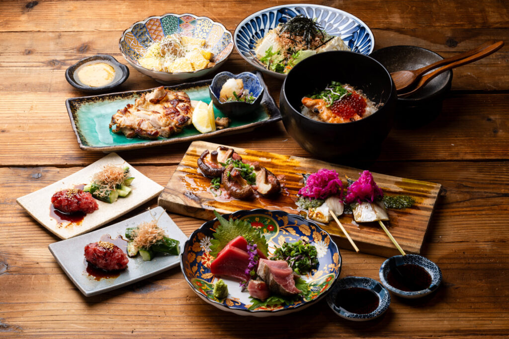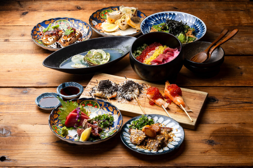 火ノ膳の人気メニューと、贅沢生ウニのせマグロ断面刺し豪快直炭火炙りレアステーキを楽しめる一番おすすめのコース!